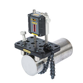 When machine parts get in the way and you need extra space to rotate the shaft, the offset bracket does the job. Simply attach it to the V-bracket (forward or backwards pointing) for extra clearance; it can displace the sensor axially by 50 mm [2"] in either direction. This bracket is included as standard with the XT770 system.