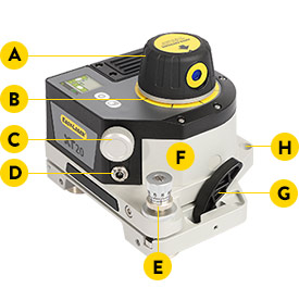 El transmisor láser XT20 se puede utilizar para medir la planitud y la rectitud. El haz láser puede efectuar un barrido de 360° con una distancia de medición de hasta 20 metros de radio. El cabezal del láser es superestable, pero fácil de girar. No necesita tornillo de bloqueo/desbloqueo. El mando de giro de precisión del cabezal del láser permite apuntar fácilmente el haz hacia el detector también a grandes distancias (relación de engranajes 1:132).