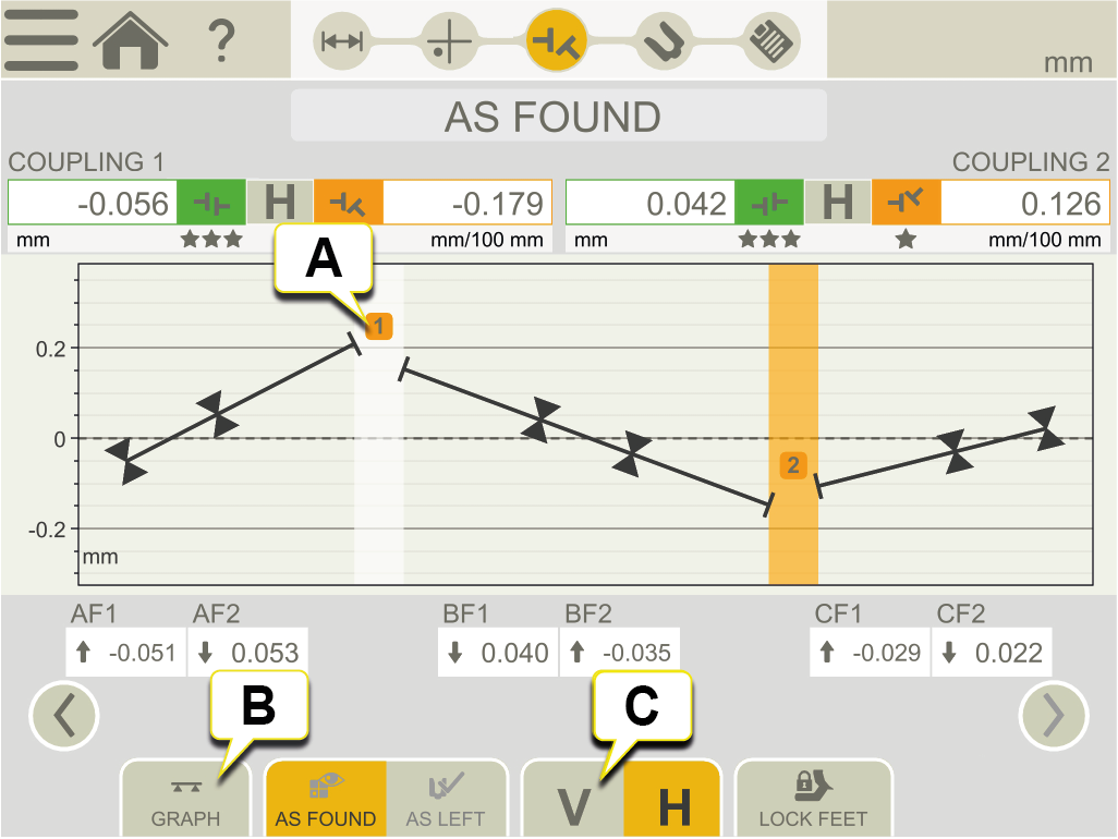 Uncertain coupling. When you adjust one coupling, it might affect the next coupling in the machine train. This coupling needs to be remeasured. |