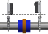 - Mount the units facing each other. Make sure they are at the approximately same rotational angle and radius. You need to place the measuring units with an offset. See image.