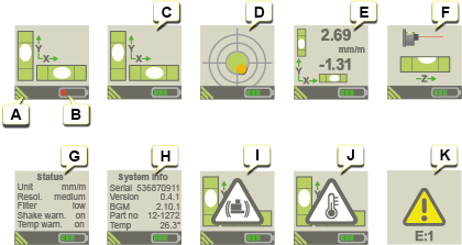- Shake warning for laser transmitter. If vibrations are strong enough to make the shake warning appear during measurement, increase the filter level of electronic levels from the XT app (via the Context menu).