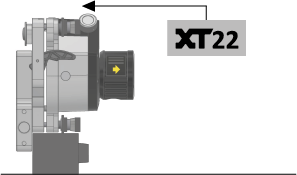 NOTE! If you want to use the vertical electronic level in XT22 when orienting the laser plane vertically, the laser transmitter must be mounted with the XT22 product label facing upwards. See image below.