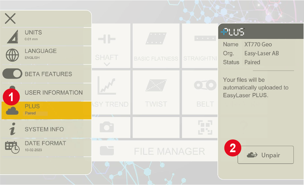 Annuler le couplage de votre application XT à Easy-Laser PLUS™