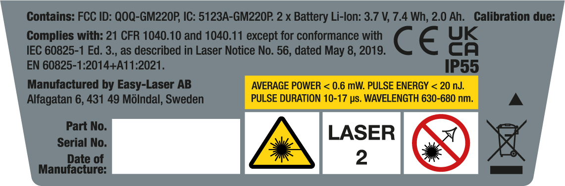 Utilizzare solo batterie fornite da Easy-Laser.