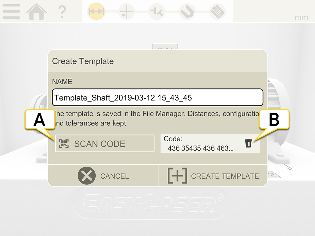 Un codice può essere collegato a misure e modelli. Usare i nuovi codici QR o i vecchi codici a barre. Applicare un QR (o un codice a barre) sulla macchina e salvare la misurazione insieme al codice scansionato. La prossima volta sarà sufficiente scansionare il codice per leggere tutti i dati della macchina.