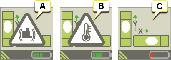 - Skakvarning för lasersändare. Om vibrationerna är så starka att skakvarningen visas under mätning bör du öka filternivåinställningen för elektroniska libeller från XT-appen (via Snabbmenyn).