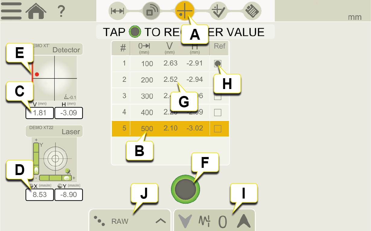 Tryck för att registrera mätvärde för aktiv mätposition.