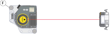 。 - 使用激光发射器上的微调旋钮 [E](在应用程序中突出显示)将激光束水平居中在探测器上,在 0.5 mm 范围内。请勿触摸探测器。点击