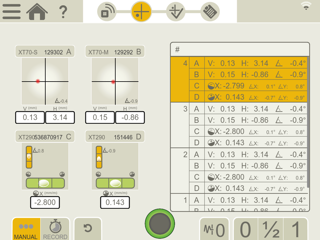 Digital Precision Level XT290 可通过无线方式连接到 Easy-Laser® XT 对中应用程序,并可在“Values”程序中读取 XT290 的值。转到 准备