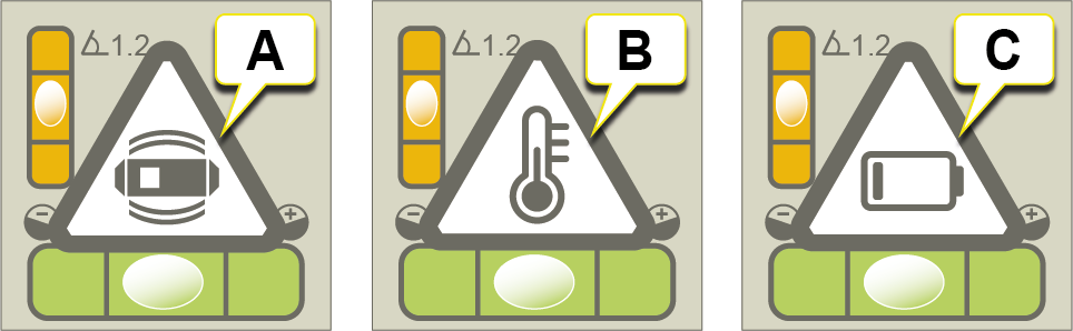 可获取 XT290 设置菜单中的温度信息。 - 电池电量不足警告。为 XT290 充电。转到 XT290 概述。