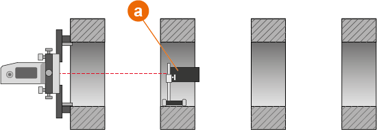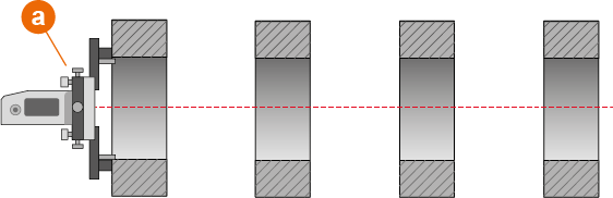 - 将激光发射器和固定器 [a] 安装到第一个孔上。