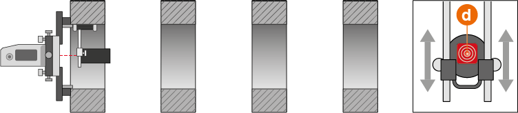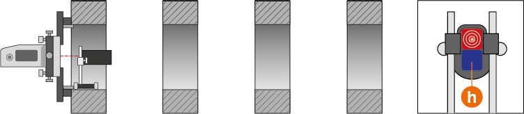 - 将探测器移动到要测量的最远的孔处 [g],然后根据图片进行放置。此操作现在设置 2 号孔中心位置。