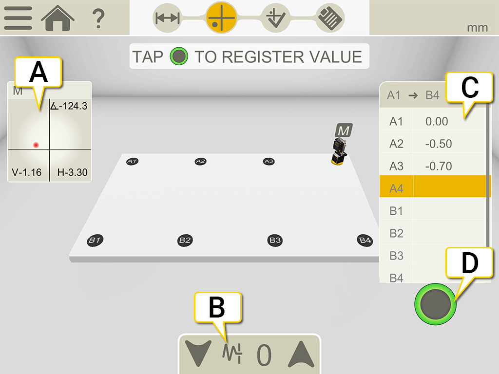 將值歸零。現在這是第二個參照點。 - 將 M 裝置移動到點 B。